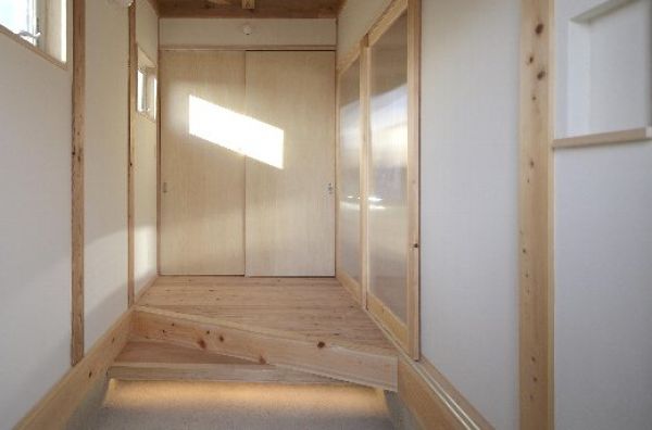 玄関と玄関ホール、引き込みの杉框二枚戸