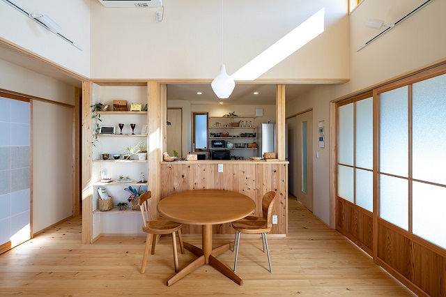 合板のフローリングやビニールクロスの壁天井が普通の家である今ですが、本当は無垢の床板・天井や珪藻土の塗り壁が当たり前であるべきで、そんな住まいが人の身体にもこころにも良く、幸せな住まいの第一歩となります。