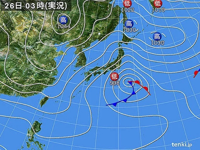 低気圧が八丈島付近を通過が、太平洋側に雪!