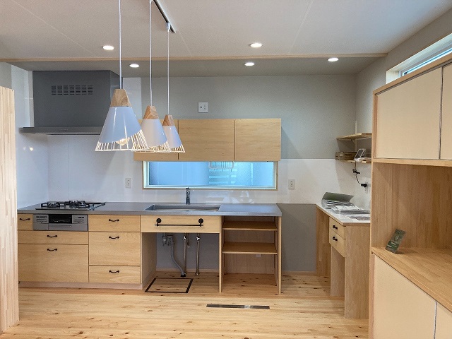 トヨウラのSUSオーダーカウンターに、大間々町の粕川木工さん作成のキッチン下台と収納です。