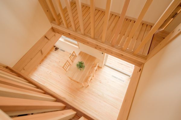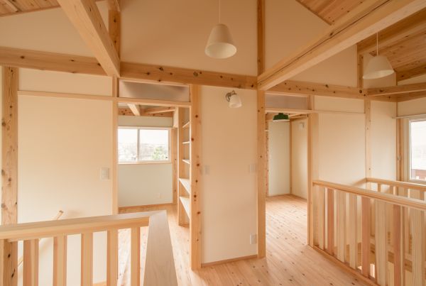 2階は厚さ27mm杉赤身床板、スタディコーナーの2階ホール