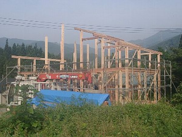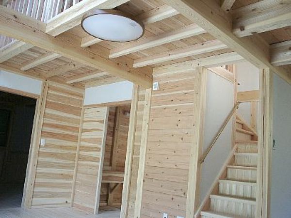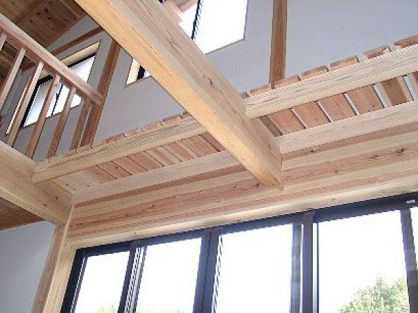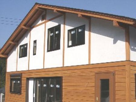 ・地域材100%活用、一般木造住宅の約2倍の木材を使用し、骨太で高耐久 ・木材以外の材料も自然素材・リサイクル素材・環境に優しい素材を使用 建築面積:66㎡(20坪) 延べ床面積:119㎡(36坪)