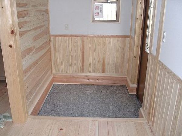 “地域の気候風土に適した地域の木材を使い、永く住み続ける事の出来る住まい” “住むほどに味わいが深まり、堅牢で健康的、財産としての価値の高い住まい” 玄関敷石は地場産の御影石
