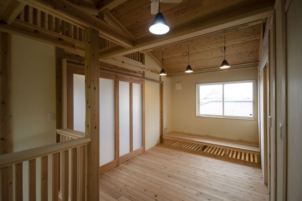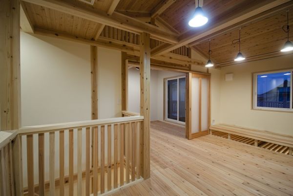 ぐんまの木100%(構造材)で造る、珪藻土と無垢の床板の呼吸する、健康で快適なお住まい。造り付けの家具とたっぷり収納、部屋干し空間に家事動線をシンプルに考え、安価な光熱費で快適なご家族大満足な木の家です。 UA値=0.4、C値=0.4 建築面積:52.17㎡(15.75坪) 延べ床面積:101.85㎡(30.75坪) 設計・施工:松島匠建(株)