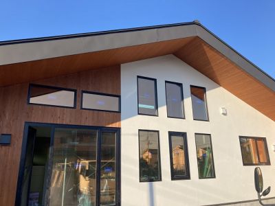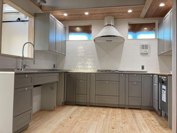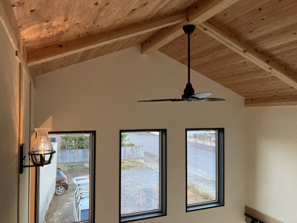ぐんまの木100%(構造材)で造る、珪藻土と無垢の床板の呼吸する、健康で快適なお住まい。UA値=0.34、C値=0.3の高性能なお住まいは、夏も冬も少ないエネルギーで快適に暮らせる、省エネで健康的なパッシブデザインのお住まい 建築面積:115.93㎡(35、00坪) 延べ床面積:131.24㎡(39.62坪) 設計・施工:松島匠建(株)