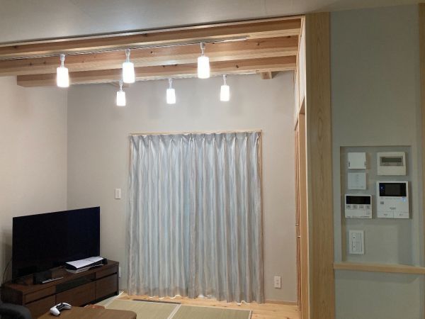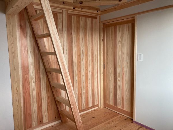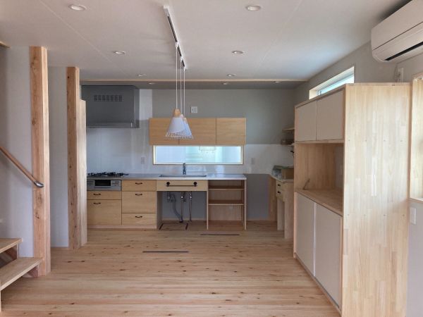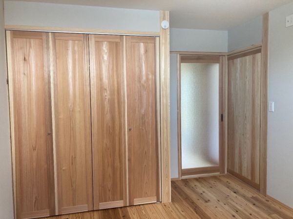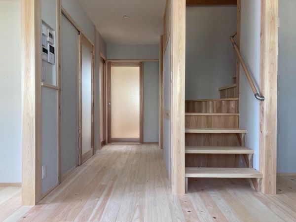 ぐんまの木100%(構造材)で造る、珪藻土と無垢の床板の呼吸する、健康で快適なお住まい。おばあちゃん、ご両親、ご夫婦、子2人計7人の大家族で住む家。UA値=0.31、C値=0.2の高性能で快適で省エネで健康的なパッシブデザインのお住まい 建築面積:94.40㎡(28.25坪) 延べ床面積:149.25㎡(45.06坪) 設計・施工:松島匠建(株)