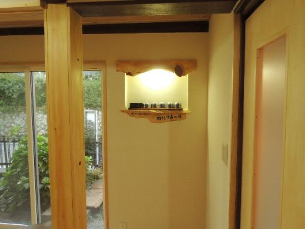 壁はナチュールの塗り壁、ニッチには間接照明を