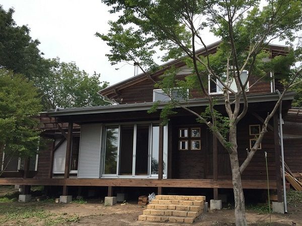十数年前に新築させて頂いた「つくりすぎない家」から、オーナーさんが変わり、建物の南側一杯にテラスとお部屋の増築を依頼され、大胆に広々としたテラス付きの増築工事でした。