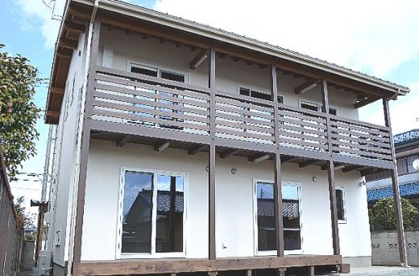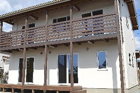 広く長い1・2階のバルコニーと外壁は西洋漆喰のフレスコ
