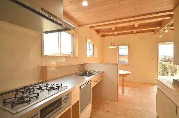 施主様のご希望で丸形のダイニングテーブル そして、定番のオリジナルキッチン