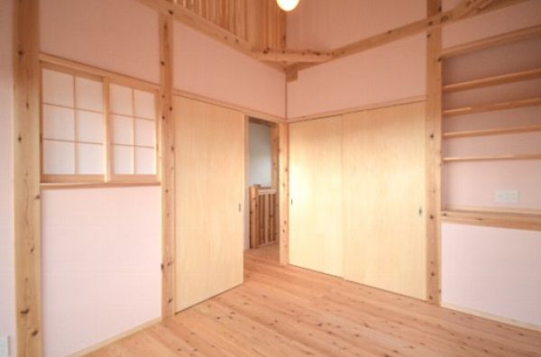 杉赤身床板と珪藻土ナチュール壁の色は、女の子好みのピンク