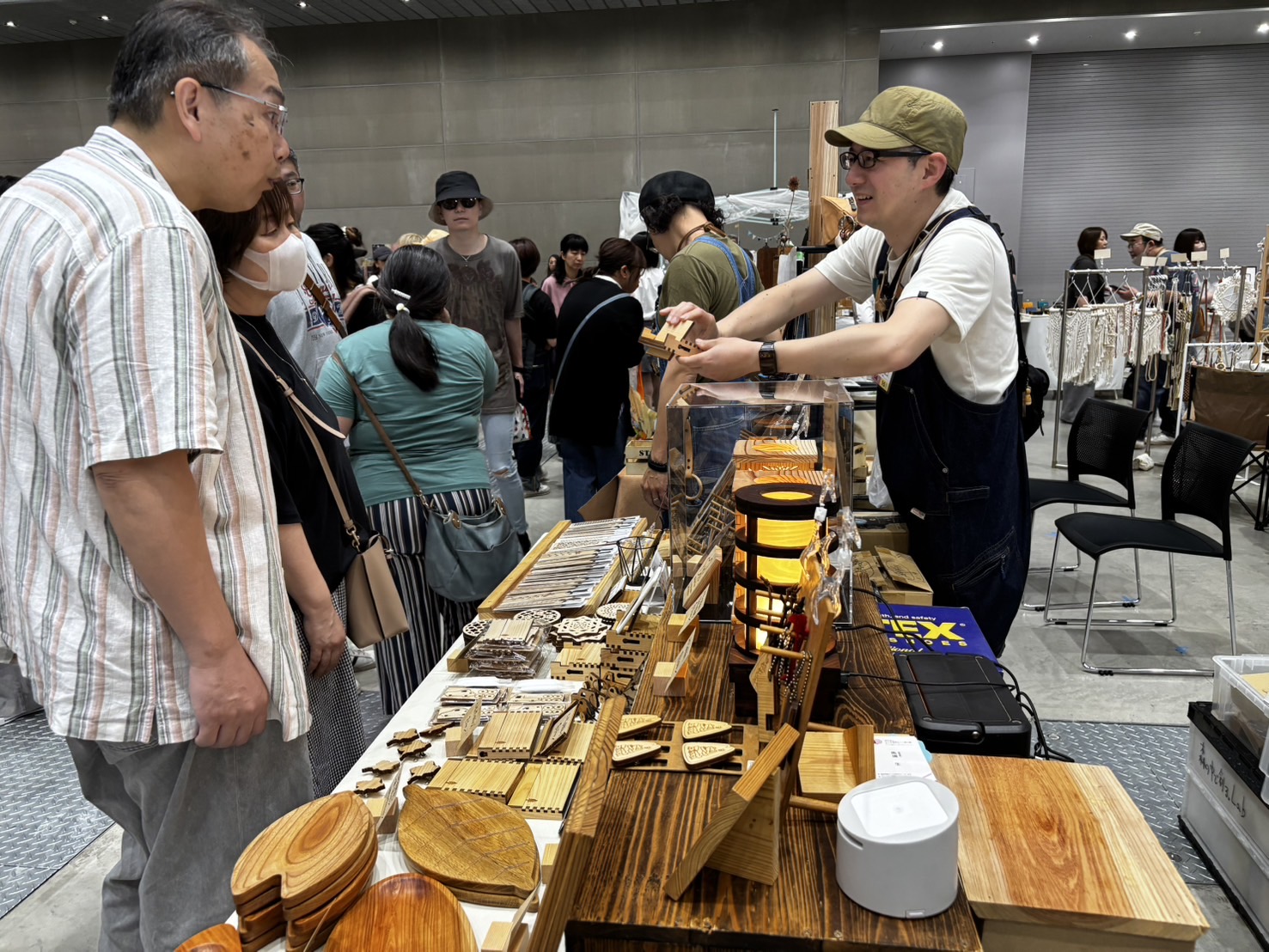 群馬県内外から、木工品やクラフト商品、古着、アクセサリー、フードなど様々なジャンルの出店者がGメッセ群馬の会場内に集まった北関東最大の屋内型マーケットでした。