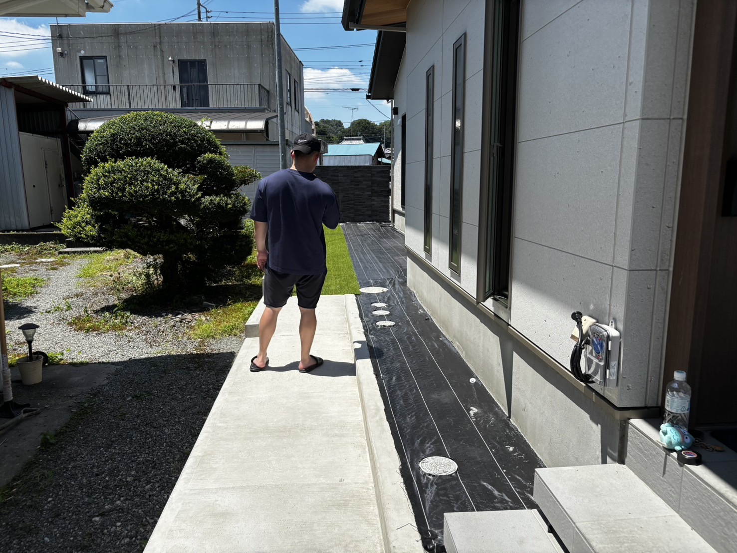 天然芝の方が自然との共生という面ではいいですが、リビングの前が緑になるだけで大きく印象が変わるし目も心も癒されます。先輩のこの大きな背中。ん~、でかすぎて頼りになるなぁ!