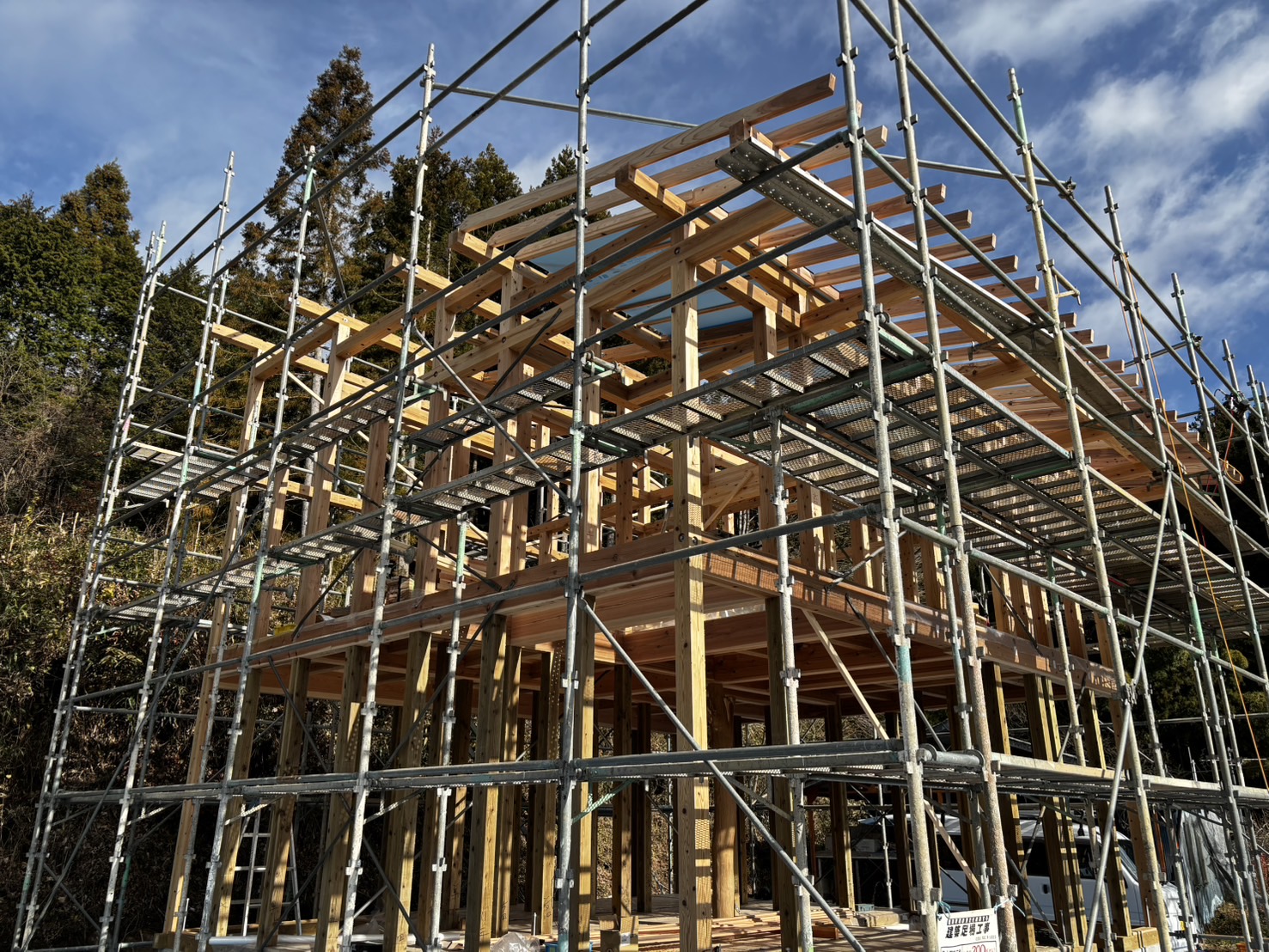 そんな乾燥と寒波が来ている今週の水曜日・木曜日の1日半、今年の6月までお世話になっていた高崎市倉渕町にある中澤建設㈱の新築工事の建て方のお手伝いに行ってきました。