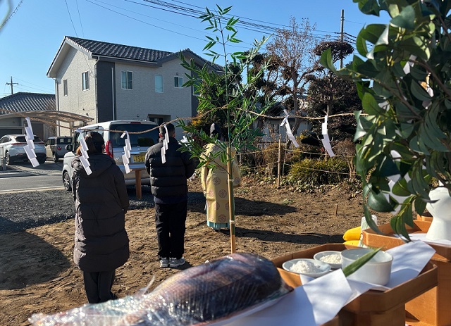 年明けての5日の大安吉日、冬の穏やかな日和の中、館林にて地鎮祭を執り行いました。