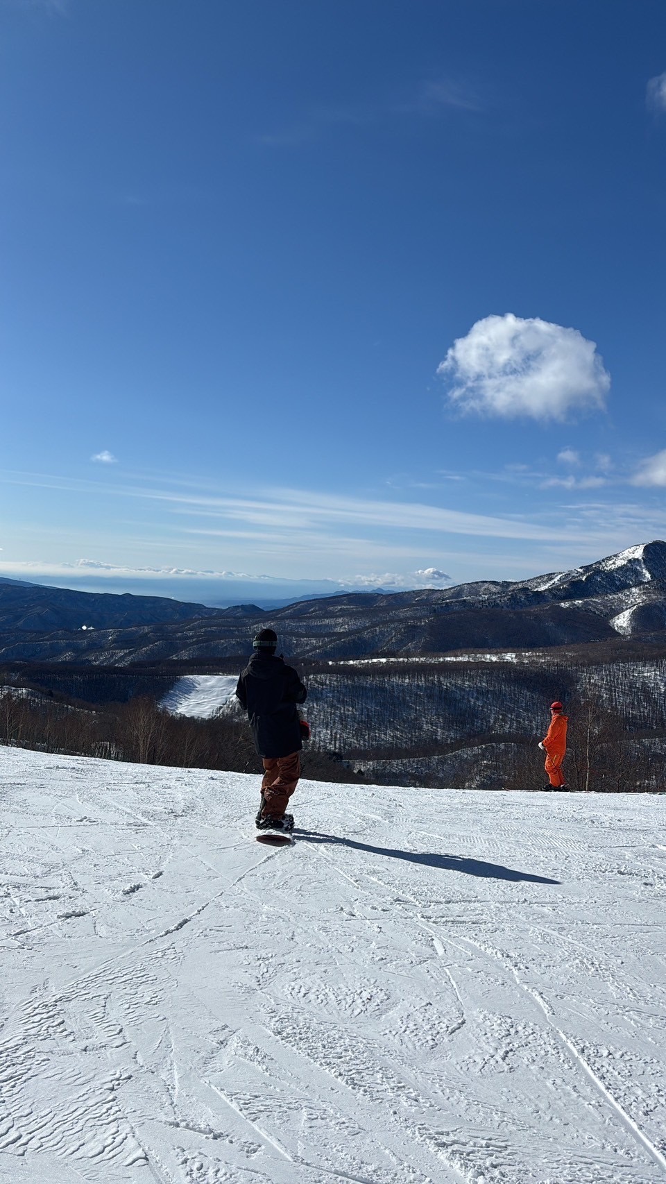 趣味のスノーボードにもお正月休みに今シーズン初めて行くことができて大満足です。今シーズンはあと何回行けるでしょうか。キレイな空気、青い空と白い雪、壮大な景色がたまらなく好きです。この自然たっぷりな中を爽快に滑ることが最高に気持ちがいいんです!