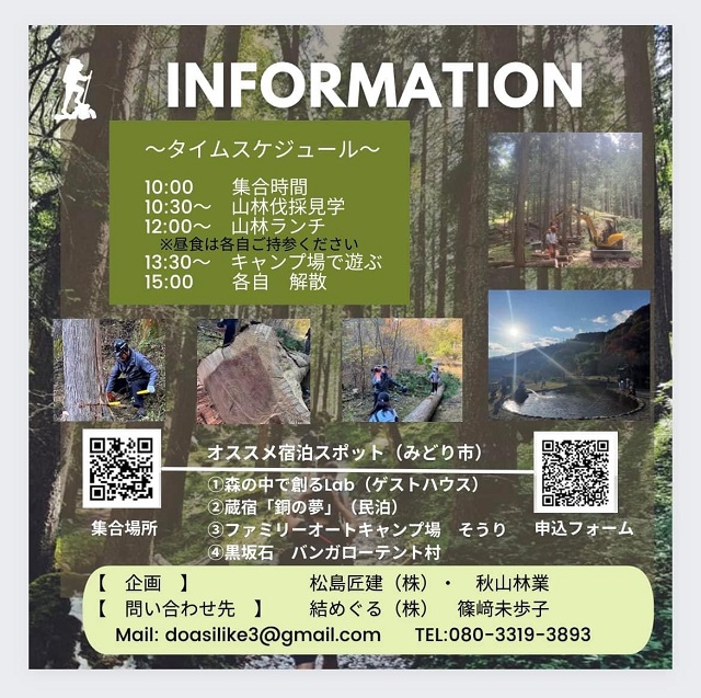 現在松島家の山の間伐作業中であり、イベントでは木の伐採を担当します。
