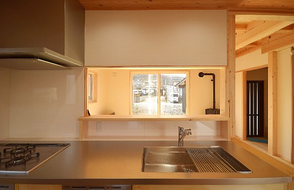 キッチンからリビング南のテラス窓をのぞんでいます。
