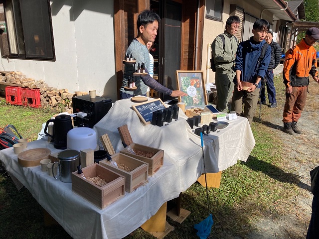 伐採イベント前の山に行く前には「森の中で創る。Lab(ラボ)」の紹介、そして山から下りてきてからは杉、桧、赤松から抽出した精油の紹介もありました。