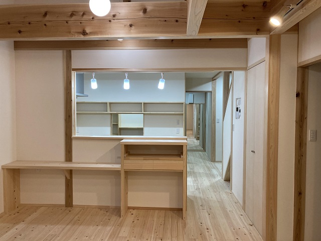 構造材も地域木材で造り、基本的に現しとして見えるところの梁は天然乾燥の木材を使っています。