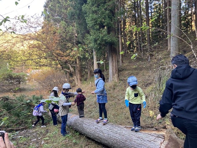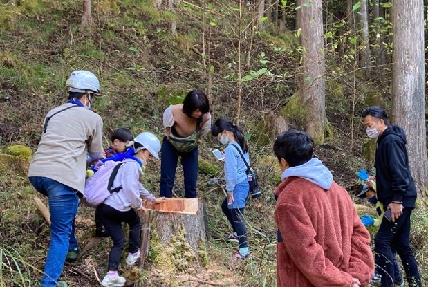 樹齢60年近くの杉の大木の伐倒を目の前で見ることのできる体験はなかなかない事であって、倒れて地面が揺れる迫力と、60年前にその木を植えた先人の想いを感じて頂いた見学会となりました。