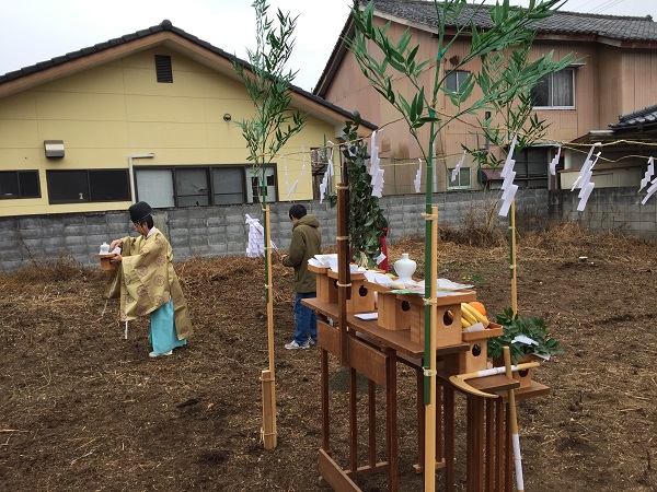 1月の吉日に行った地鎮祭で、土地を清めて安全祈願。