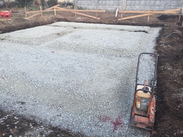 ベタ基礎の砕石地業。