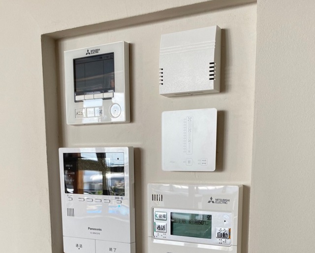↑ ニッチ内の右上がCO2センサーで、右中が換気扇のコントローラー(ヴェントサン)