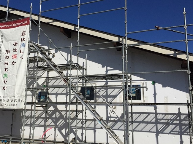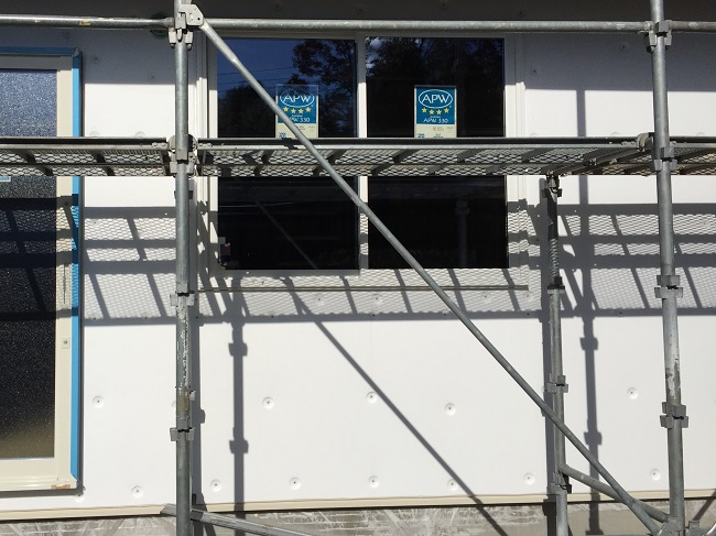 EPSボードも張り終わり、まもなく左官屋さんによる外部の塗り壁作業も始まります。