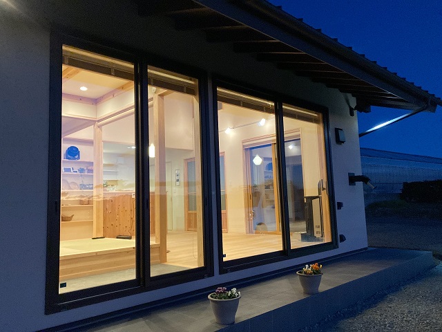 南面は大開口のテラス窓があり、日中には太陽熱を有効に取り入れるためのlow-e日射取得ガラスで室内を暖め、2重窓でその暖かさを逃がさず、とても省エネとなるはずです。