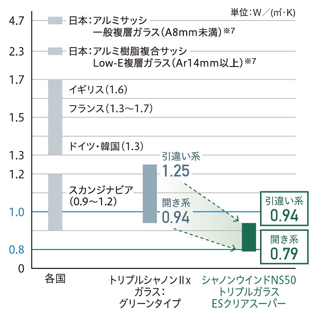 UA値0.34以下であれば4地域でも「G2グレード」となるので、高性能な家づくり工務店ではUA値0.34以下を目標としている事と思います。 そして断熱材や窓の仕様が同じでも、家の形や開口部である窓の大小によってUA値の値は多少変わってはきますが、断熱材の厚みが30㎝でなくとも、トリプル樹脂サッシと付加断熱でUA値0.3以下の住宅が造れます。