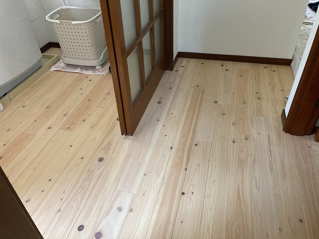 無垢の床板を代表する桧の床板張りリフォームのご依頼を受けましたので、ご紹介いたします。