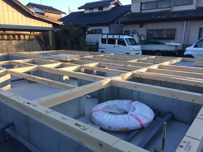 太田の新築工事も基礎工事が終了して、土台敷きまで進行しています。