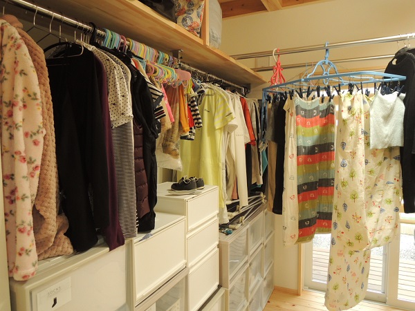 下着や靴下は畳んで収納ケースへと、洗濯作業の動線が一部屋で完結し、「洗濯作業が半分に時短しました」と、喜んで頂いています。