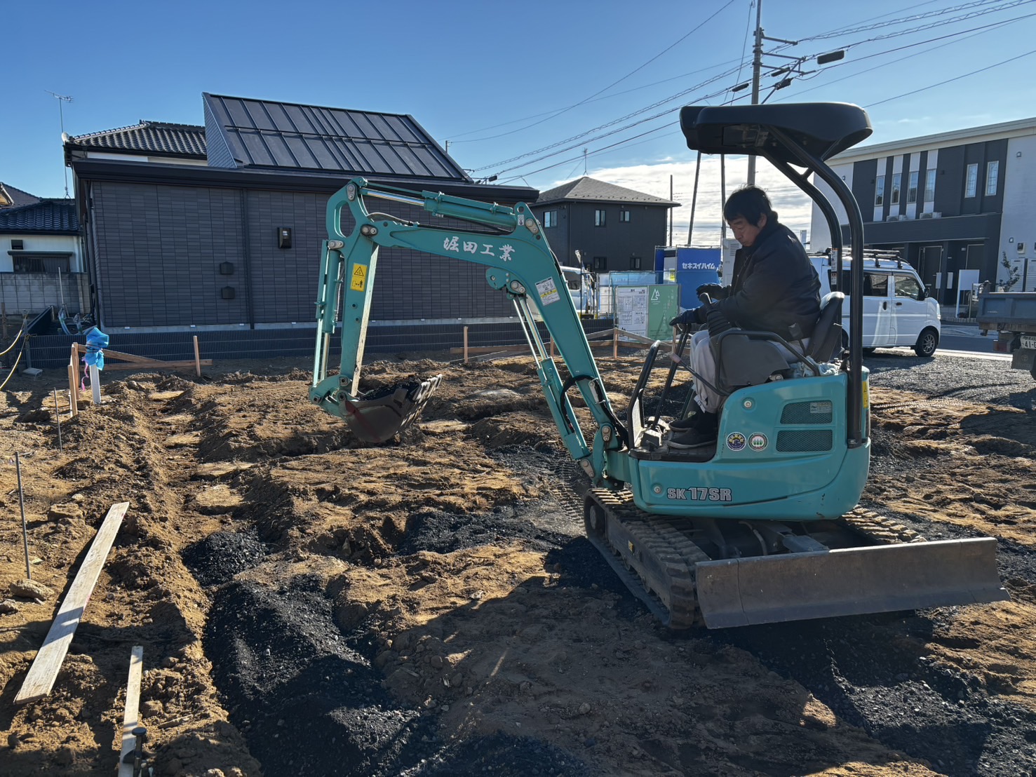 館林市の新築工事では基礎工事が着工しました。今週は遣り方に始まり、砕石まで進みました。堀田工業の堀田さんに色々と聞きながら僕もお手伝いをしてきました。堀田さんは、20代、30代の頃は群馬の大きなゼネコンで現場監督をバリバリやっていた方なんです。ですので、基礎工事だけでなく監理業務に関してもいつも色々と教えてくれます。