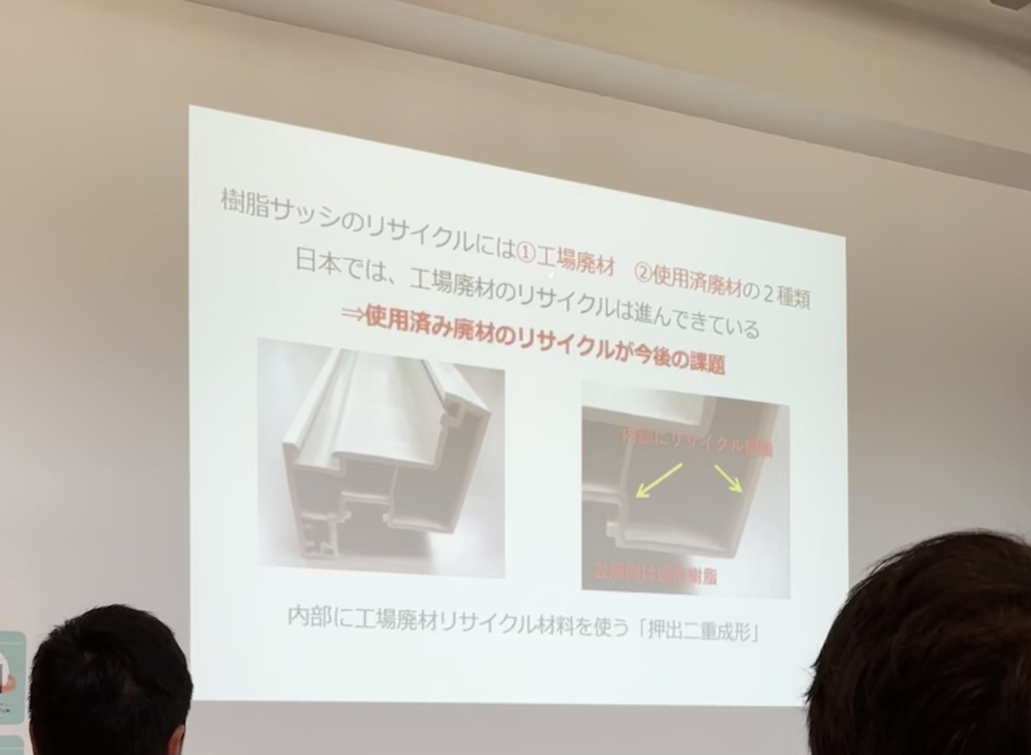 工場見学の前にマテックスの新井さんと清水さんから『地球が壊れかけている』というお話と『なぜマテックスがサッシ工場を作ったのか』というお話をお聞きしました。