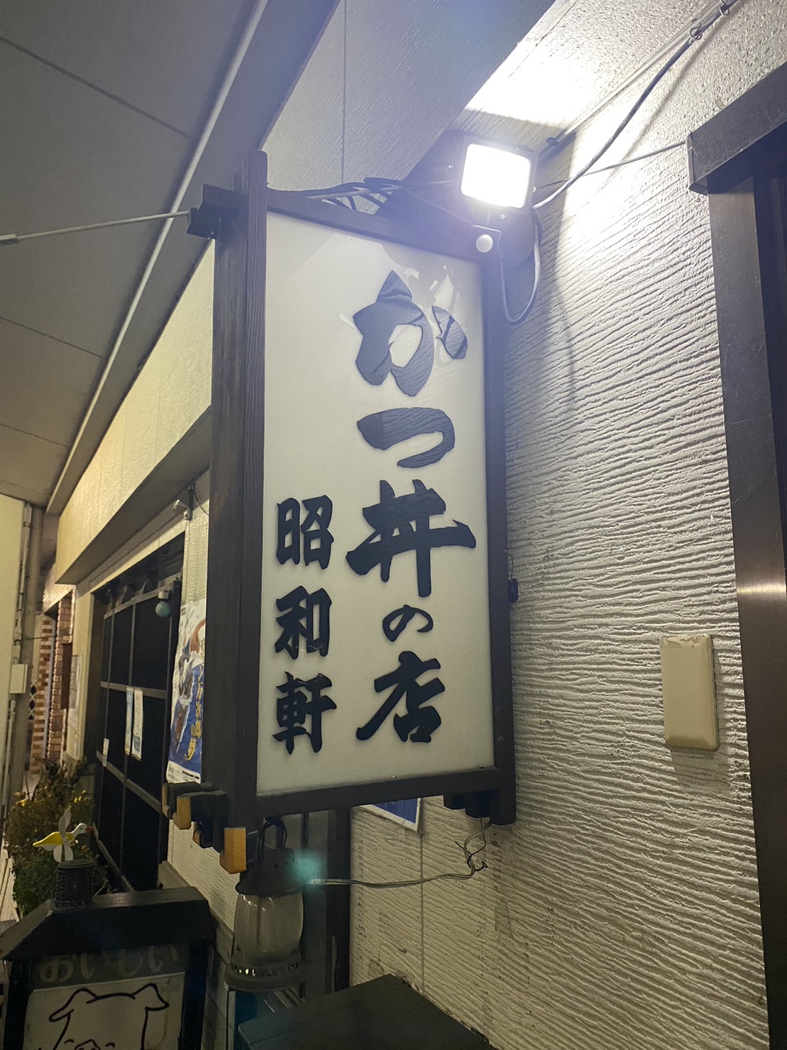 7日の夜は白馬村から南の方へ車で30分走ったところにある大町市の美味しそうなかつ丼のお店へ行って来ました。日曜日の夜だというのに雪が降っていたせいか、大町市の商店街は全然ひと気がなく、寂しい雰囲気が立ち込めていました。お目当てのかつ丼のお店はその商店街の一角にあります。