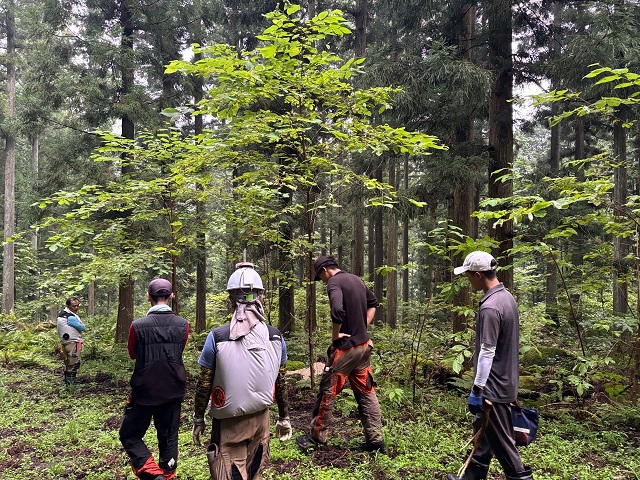 小林林業さん、秋山林業さん、地域おこし協力隊の吉沢さん、伊藤さん、そして息子聖士も