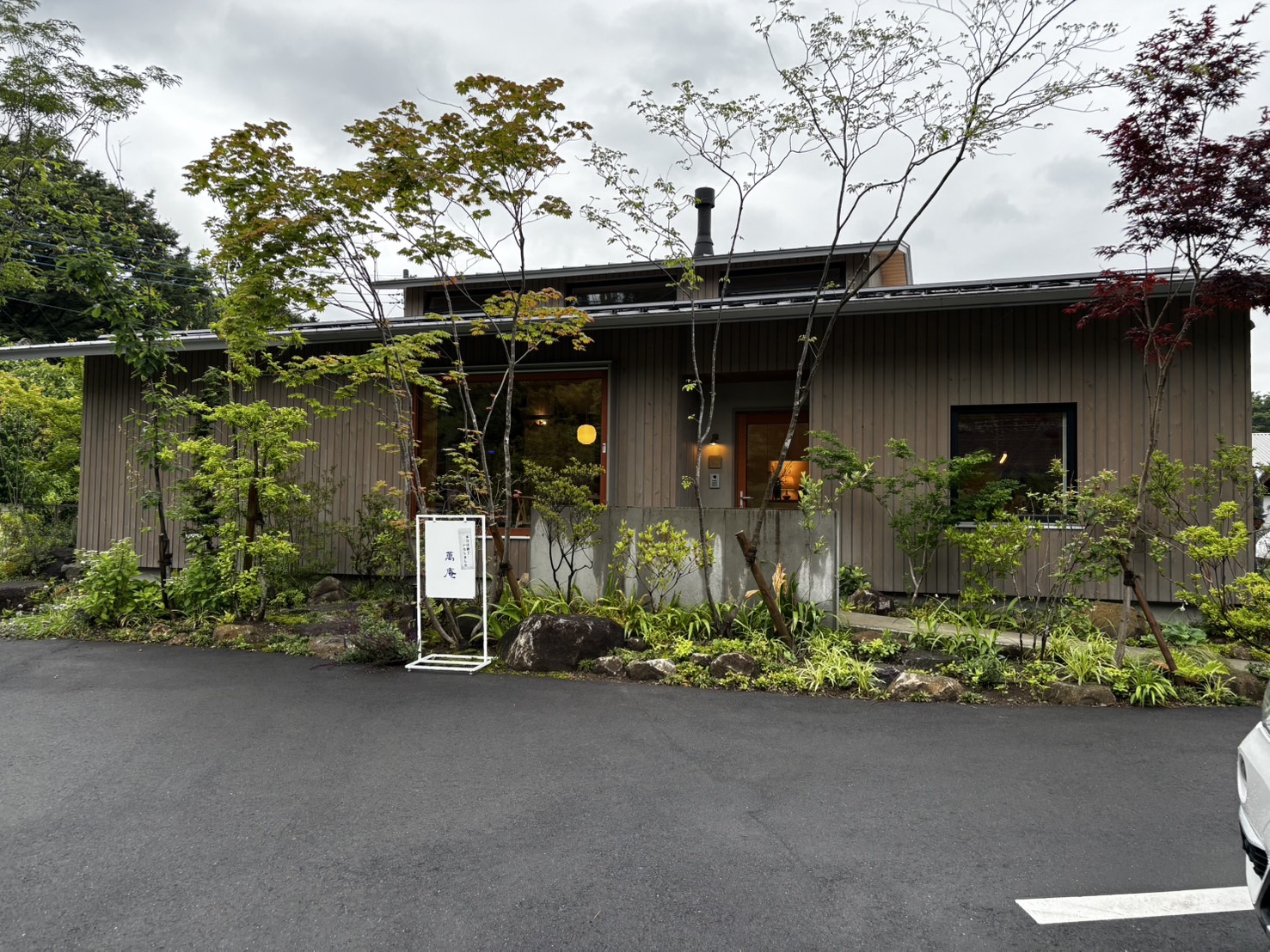 腰の掛けられる大きな木製サッシの腰窓もとても素敵だったし、植栽もきれいなファサードも洗練されており長く居たくなるし、長く見ていたい建物でした。おそば屋さんでこう感じるくらいですから、丸萬建設さんが造るこの性能とデザインが、自分たちが実際に住む家となると考えるだけで幸せに感じるだろうなと思いました。お客さんにそう思ってもらえるような建物を作ること、僕のこれからの課題です。