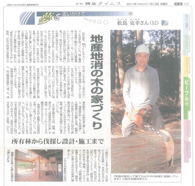 その頃の自社のキャッチコピーが「地産地消の木の家づくり」で、日本の家は近くの山で育った木を使って造るのが一番であり、地域の中で経済が循環し、化石エネルギーの消費も少なく、経済と環境の好循環を築くことができる!と、時代の本流から外れた我が道を行く!家づくりを続けてきたのでした。