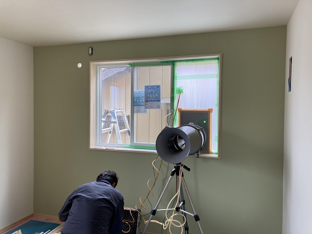 とは言え、太田のお住まいもほぼ完成が近づき、お引渡し前に既定の「気密測定」を行いました。