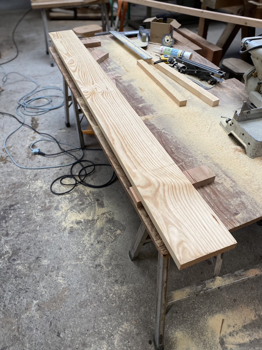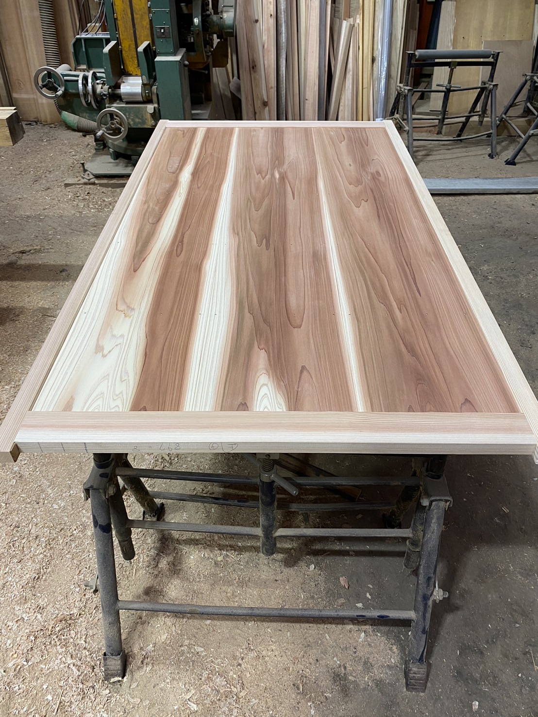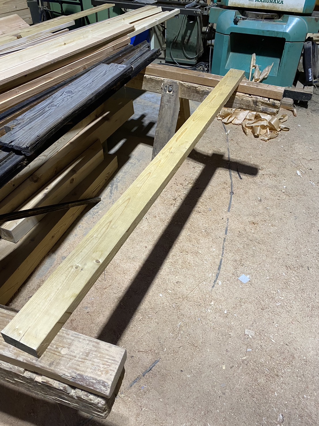 少し前のことですが、康之さんから「ヒノキを長さ2mでこの寸法で削って塗装をしておいて」と言われました。