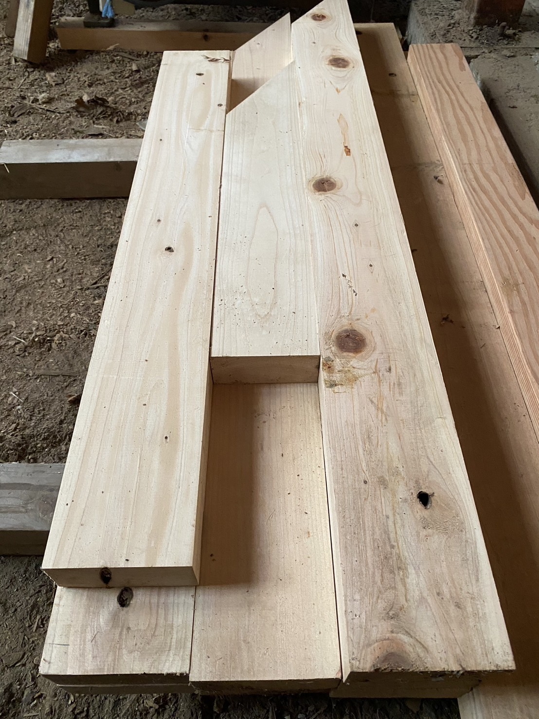 ↑ヒノキと間違た木。全体が綺麗で比較的整っていますが、切った時はヒノキと違って無臭でした。今のところあまり扱ったことがないので、この材をもう1枚見つけて加工してと言われると、見つけることができるか不安な木です。