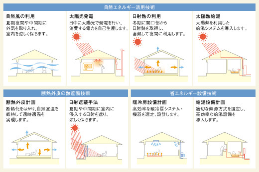 ↑ 自立循環型住宅によるパッシブデザイン技術手法