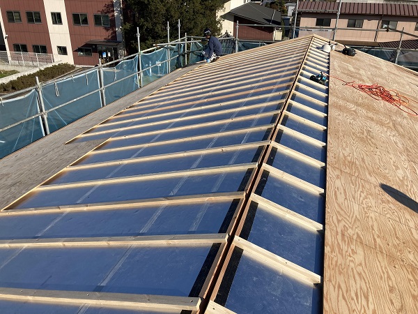屋根の断熱は弊社のスタンダードの外張り断熱に通気層、そして充填断熱の附加断熱です。