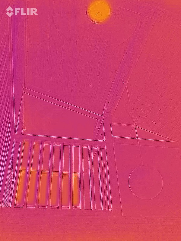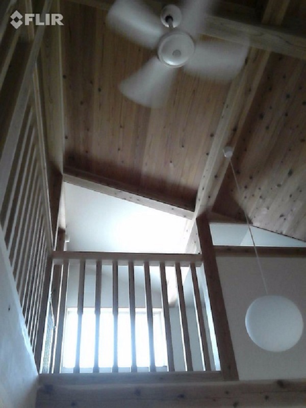 1階リビングから吹き抜けの天井と東の壁をサーモグラフィカメラで撮りました。