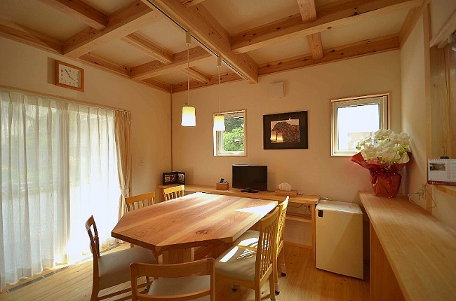 4. 天井の仕上げは杉赤身羽目板張り、又は土佐和紙貼り