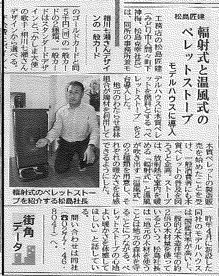 「輻射式と温風式のペレットストーブ」の見出しで新聞に掲載されました。