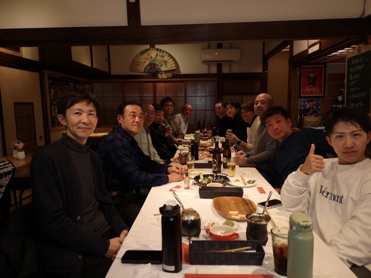 見学会が終わった後は忘年会ということで桐生市にある『OKIYA ゲストハウス』さんにお邪魔してきました。みどり市の大工さんやそのお仲間たちが古民家を改修して素敵な空間に仕上げていました。この空間で皆で素敵な時間を過ごすことができて幸せでした。