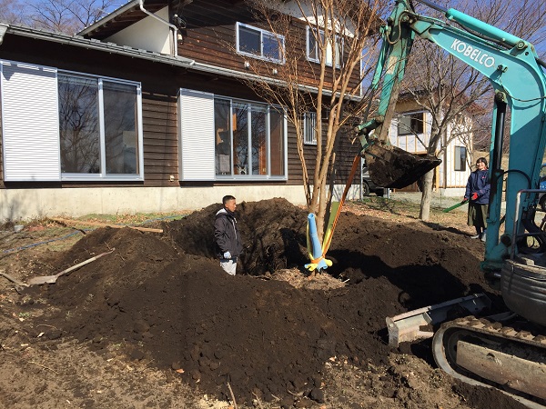南の庭先に植えたヤマボウシやカエデの木は、今回増築部分に掛かるため、その移植作業からです。